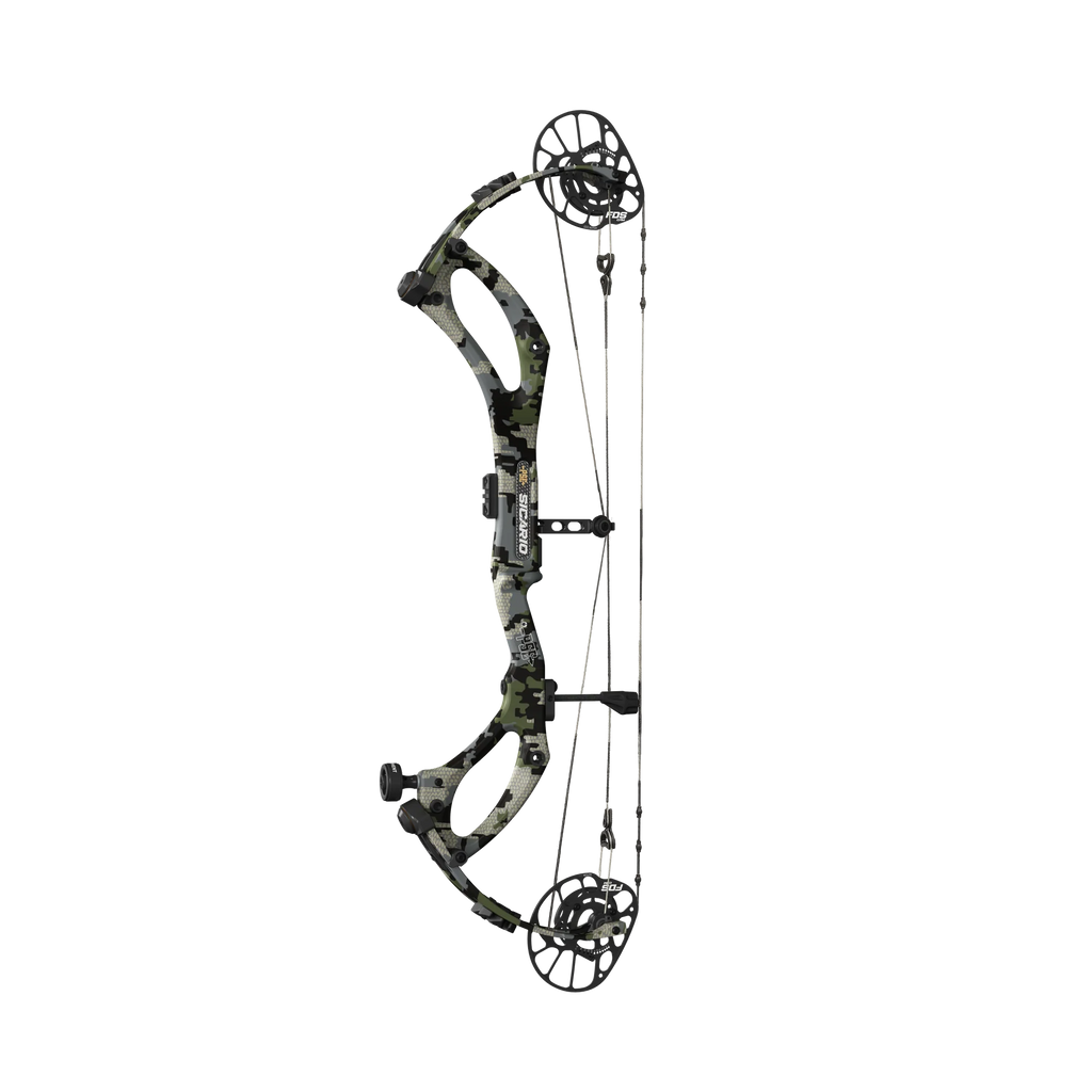 The PSE Sicario Carbon redefines high-performance bowhunting with a lightweight carbon riser and the groundbreaking FDS (Full Draw Stability) Cam System. Engineered for stability and accuracy, the Sicario delivers blazing speed up to 357 fps while maintaining a dead-in-hand feel and smooth draw cycle. Its refined 33-inch axle-to-axle frame and 5 ¼-inch brace height strike the perfect balance between maneuverability and precision.