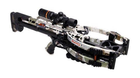 The R470, engineered as the complete crossbow package, is a feature-rich powerhouse designed to inspire confidence no matter the hunting scenario. Designed to be the most accurate, user-friendly, and high-performance crossbow on the market, the R470 combines a compact design with exceptional speed, durability, and a silent, effortless cocking system. At 26.75 inches long and 8.4 pounds, the R470 is compact and easy to handle in the field.
